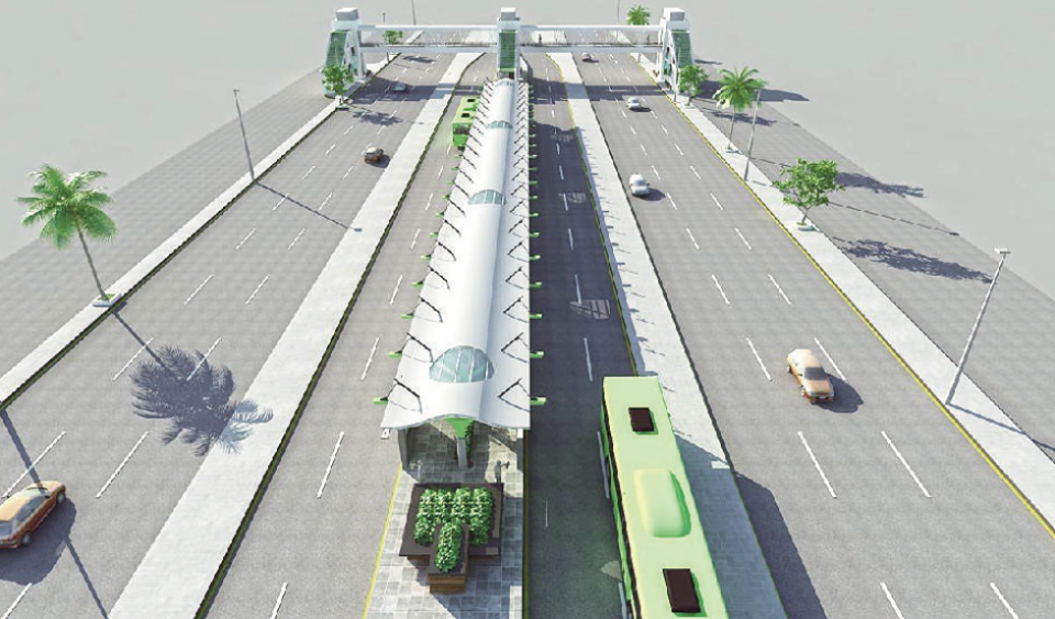 Out of the 17.8kms stretch of the Green Line BRT, 9.92kms are elevated and 7.88kms are on ground. There are a total of 21 stations along its route. It was envisioned that after its completion, the corridor will benefit nearly 300,000 passengers per day.