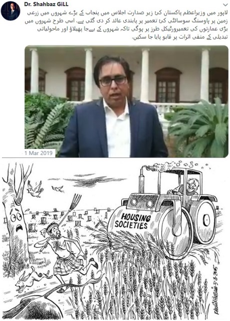 لاہور میں وزیراعظم پاکستان کئ زیر صدارت اجلاس میں پنجاب کے بڑے شہروں میں زرعی زمین پر ہاوسنگ سوسائٹی کئ تعمیر پر پابندی عائد کر دی گئی ہے. اسی طرح شہروں میں بڑی عمارتوں کی تعمیر ورٹیکل (عمودی) طرز پر ہوگی تاکہ شہروں کے بےجا پھیلاؤ اور ماحولیاتی تبدیلی کے منفی اثرات پر قابو پایا جا سکے