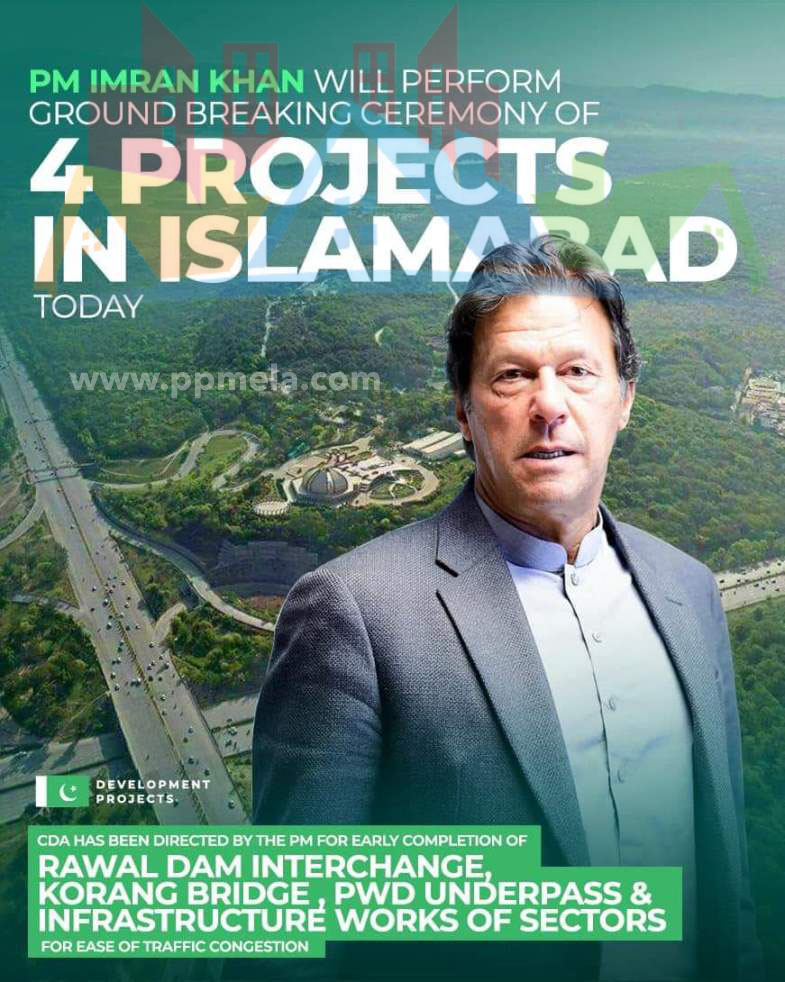 PM to inaugurate three mega projects which will ease traffic congestion in the Islamabad Capital Territory (ICT). Prime Minster will do ground breaking of mega projects of Islamabad/Rawalpindi including Korang Bridge PWD Underpass Rawal Dam Interchange. PM Imran has directed Capital Development Authority (CDA) for early completion of Rawal Dam Interchange, Korang Bridge and PWD Underpass...